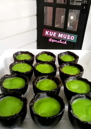 KUE MUSO adalah kue basah tradisional khas Jambi yang memiliki cita rasa manis,gurih, legit, dan tekstur lembut-kenyal. Kue ini merupakan warisan kuliner daerah Jambi dan populer sebagai jajanan pasar atau hidangan untuk acara-acara khusus. Kue ini berwarna hijau muda dan bentuknya seperti mangkuk dengan bagian pinggirnya dibalut cokelat. Bahan-bahan 16 Pcs Bahan Kulit Kue :