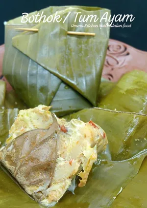 Olahan ayam yang tiada henti nya, sebagai solusi lauk Bahan-bahan  9 bks 1/4 kg kulit dan daging ayam tanpa tulang 4 buah cabe merah besar 7 buah cabe kecil 2 buah tomat 5 btr kemiri 5 buah bawang putih 3 ruas kencur 2 sdt garam 2 sdt gula pasir 1 sdt penyedap rasa 9 lbr daun salam 18 lbr daun pisang 4 lbr daun jeruk purut 1 btr telur Cara Membuat  50 menit Cuci
