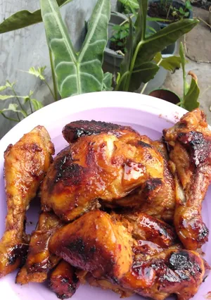 Bahan-bahan 1 ekor ayam negeri 4 lembar daun jeruk 750 air (untuk ungkepannya) 100 gr gula merah 10 gr asam jawa Bumbu halus 5 bawang putih 4 bawang merah Secukupnya cabai merah (boleh skip) 1 ruas lengkuas 3 ruas jahe 2 batang sereh Bumbu oleh 5 SDM madu 2 SDM kecap manis 2 SDM kecap asin 2 SDM kecap/saus Inggris (pilih satu) 1/2 SDM minyak goreng 3 SDM bumbu halus sisa ungkepan ayam Cara Membuat Cuci