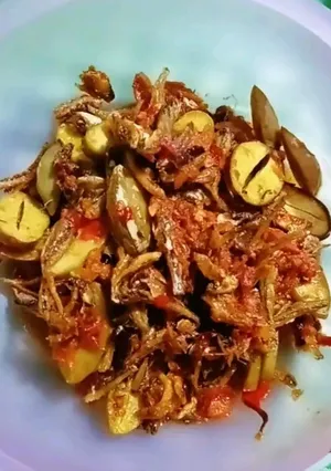 Iris2 jengkol jgn terlalu tipis cuci sampai airnya bening. Tiriskan. Cuci juga teri sampai bersih. Tiriskan