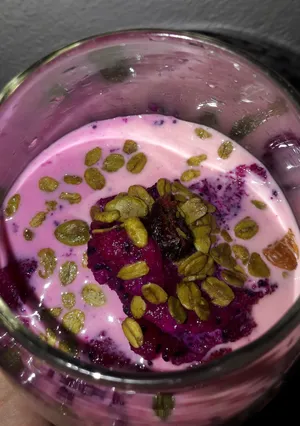 Long time ago my mother like made dragon fruit mixed with milk. Bahan-bahan 1 porsi 1/2 dragon fruit Matcha granola Milk Cara Membuat 5 menit Cut the dragon fruit into 2 piece Pour milk into glass Add granola for topping Apakah kamu sudah membuat resep ini? Bagikan foto hasil kreasimu!